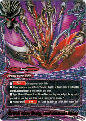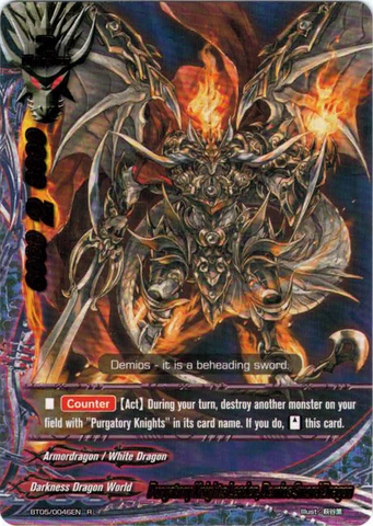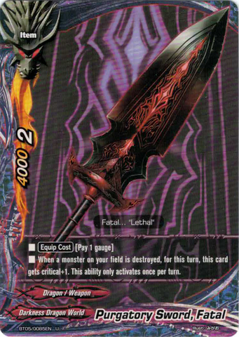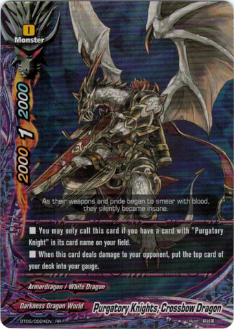 - [Counter] [Activate] During your turn, destroy another monster on your field with "Purgatory Knights" in its card name. If you do, for this turn, this card gets critical+1! You may only use this ability once per turn.