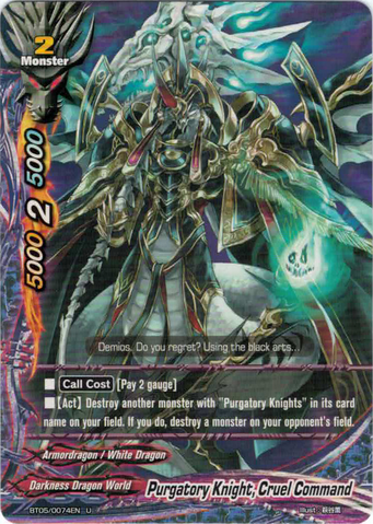 - If you have a card on your field with "Purgatory Knights" in its card name, your opponent's monster in the center gets defense-2000.