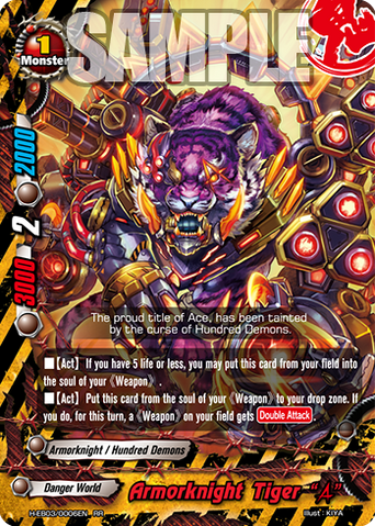 - [Counter] [Activate] During your turn, put a 《Armordragon》 or 《Hundred Demons》 from your field into your drop zone. If you do, [Stand] this card. You may only use this ability once per turn.