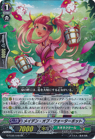 Auto [R]: [Put this unit into your soul & Choose a normal unit from your drop zone, and put it on the top of your deck] When your other unit with 「Maiden」 in its card name is placed on [R] from your deck, if you have a vanguard with 「Maiden」 in its card name, you may pay the cost. If you do, shuffle your deck, draw a card, and [Counter Charge (1)].