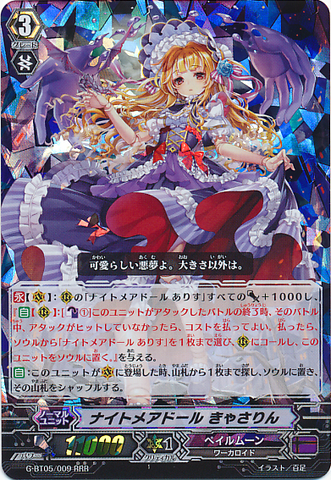Continuous [V]: All units named 「Nightmare Doll, Alice」 on your [R] gets [Power] +1000 and 「Auto [R]: [Counter Blast (1)] At the end of the battle that this unit attacked, if the attack did not hit during that battle, you may pay the cost. If you do, choose up to one card named 「Nightmare Doll, Alice」 from your soul, call it to [R], and put this unit into your soul.」.