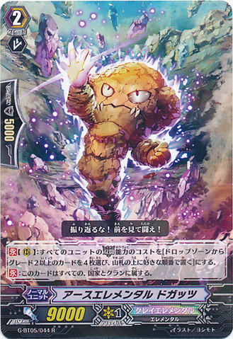 Auto: [Counter Blast (1) - card with in 「Eradicator」 its card name] When this unit is placed on [R], you may pay the cost. If you do, put the top card of your deck into your damage zone. Then, if that card has 「Eradicator」 in its card name, your opponent chooses one of his or her rear-guards, and retire it. At the end of that turn, choose a card from your damage zone, and heal it.