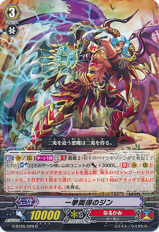 Auto: [Choose a face down card named 「Jester Demonic Dragon, Lunatec Dragon」 from your G zone, and turn it face up] When this unit is placed on [V], you may pay the cost. If you do, until end of turn, this unit gets 「Auto [V]: When a unit is placed to [R] from your soul, that unit gets [Power] +2000 until end of turn.」 and 「Continuous [V] [Generation Break (3)]: During your turn, this unit gets [Critical] +1.」.