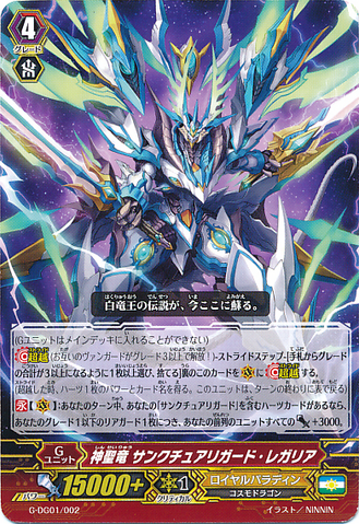 - 7 Reprinted Cards that is newly added to the G Regulation (Normal)'s Cardlist: Sanctuary Guard Dragon, Conjurer of Mithril, Sword of Hope, Richard, Knight of Reform, Ladinas, Starting Legend, Ambrosius, Bringer of Good Luck, Epona and Yggdrasil Maiden, Elaine.
