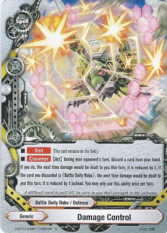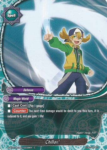 - [Counter] Put the top card of your deck into your gauge, and, for this turn, the next time you would be dealt damage, it is reduced to 0.