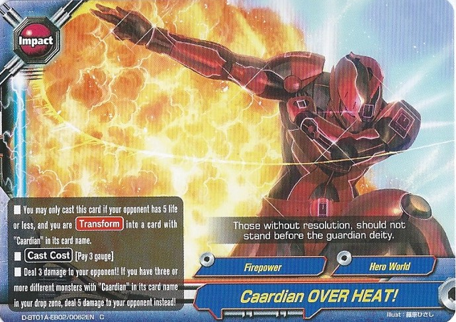 - Deal 3 damage to your opponent! If you have three or more different cards with "Caardian" in its card name in your drop zone, deal 5 damage instead!