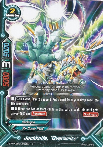- [Equip Cost] [When you have 5 or less life, put a card with "Jackknife" in its card name with 3 or more soul from your field to the drop zone & Pay 2 gauge]