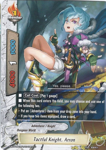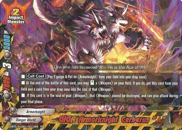 - [Activate] If there are three or more souls in this card, you may pay 2 gauge and put this card into your drop zone. If you do, equip a "Jackknife "Gold Ritter"" from your hand without paying its [Equip Cost].
