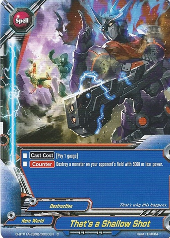 - Choose a monster on your opponent's field. For this turn, when that card is destroyed, put the top card of your deck into your gauge and draw a card. You may only cast "Wakey☆Thump SHOOTER" once per turn.