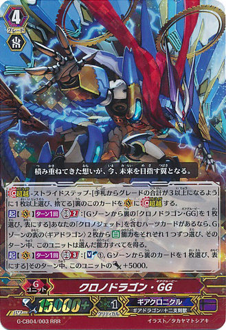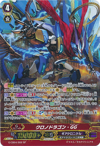 Auto [V] [Generation Break (2)]: [Soul Blast (1) & Choose a face down card with 「Chronoscommand」 in its card name from your G zone, and turn it face up] When this unit is attacks or is attacked by a vanguard, you may pay the cost. If you do, this unit gets [Power] +10000 until end of that battle.