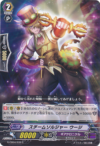 Auto [R]: When your opponent's rear-guard is put into his or her deck, if you have a face up card with 「Chronoscommand」 in its card name in your G zone, this unit gets [Power] +2000 until end of turn.