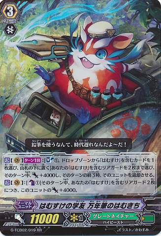 Auto [R]: [Choose a normal unit with 「Hammsuke」 in its card name from your drop zone, and put it to the bottom of your deck] When this unit attacks a vanguard, you may pay the cost. If you do, choose one of your other rear-guards with 「Hammsuke」 in its card name, that unit and this unit gets [Power] +4000 until end of turn, and at the end of that turn, retire the unit that was chosen with this effect.