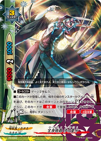 - If you have an item with 6000 or greater power equipped, this card's size on the field is reduced by 2.When an item on your field attacks, you gain 1 life!
