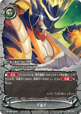- [Counter] Choose an 《Dragon Chief Emperor》 in battle, and for this battle, give it power+3000, defense+3000, and [Counterattack]