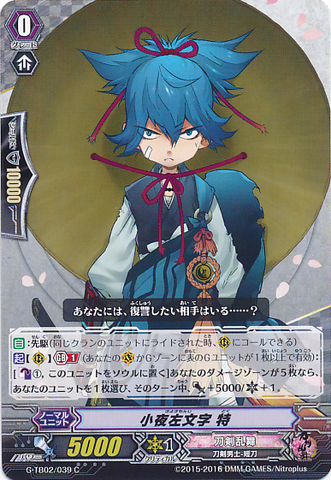Nitou Kaigan - Auto [V/R]: [Soul Blast (1)] When this unit is boosted by a <Touken Danshi - Wakizashi>, you may pay the cost. If you do, [Counter Charge (1)].