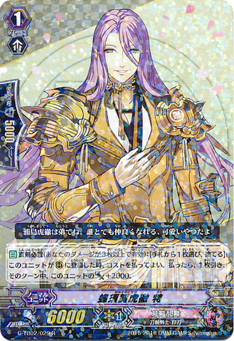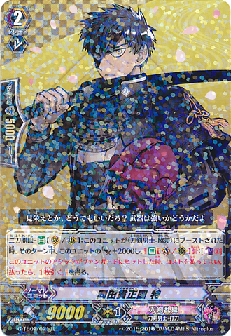 Continuous [R] [Generation Break (1)] {This ability is active if you have one or more face up G units in total on your [V] or G zone} Shinken Hissatsu {This ability is active if you have three or more damage}: During your turn, this unit gets [Power] +2000.