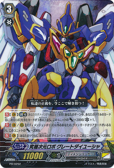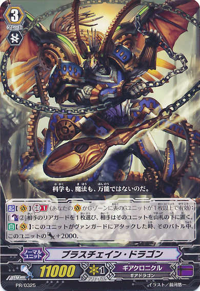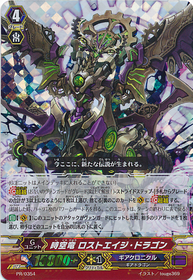 Auto [Generation Break (1)] {This ability is active if you have one or more face up G units in total on your [V] or G Zone}: During your main phase, when this unit is placed on [R] choose another of your rear-guards, and until end of turn, it gets 「Auto [R]: At the end of the battle that this unit attacked a vanguard, if this unit's [Power] is 20000 or more, [Soul Charge (1)], choose a card from your damage zone, and turn it face up.」.
