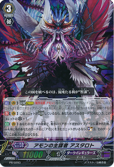 Auto [R]: [Counter Blast (1) & Put this unit into your damage zone] When this unit's attack hits a vanguard, you may pay the cost. If you do, choose one face up card other than a card named 「Overdose Celestial, Asmodel」 from your damage zone, and call it to [R].