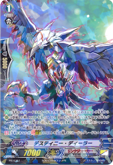 Auto [R]: [Soul Blast (3)] When this unit's attack hits a vanguard, you may pay the cost. If you do, choose up to two cards at random from your opponent's hand, bind them face down, and at the end of that turn, your opponent puts the cards bound with this effect into his or her hand.