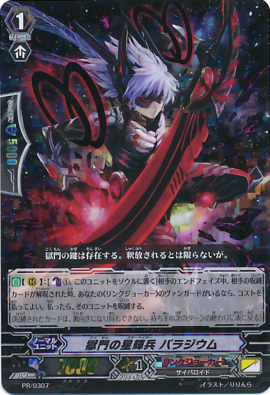 Auto [Generation Break (1)] {This ability is active if you have one or more face up G units in total on your [V] or G zone}: When this unit is put into your bind zone from [R], choose up to one of your opponent's grade 1 or less rear-guards, and your opponent puts that unit on the bottom of his or her deck.