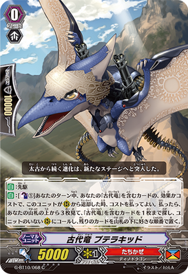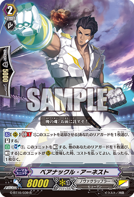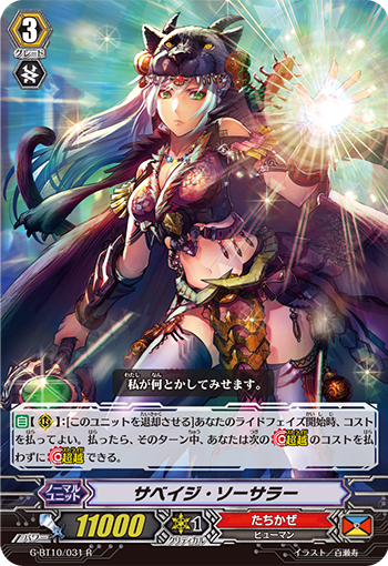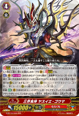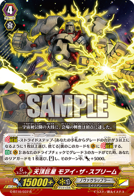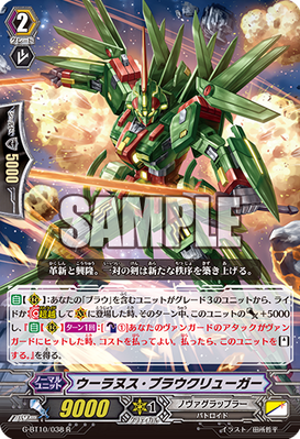 Auto [R] [Generation Break (1)]: When your drive check reveals a grade 3 card, choose one of your opponent's rear-guards in the front row with [Power] less than or equal to this unit's [Power], and retire it.