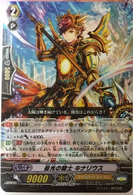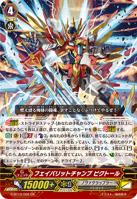 Rush - Auto [R] [Generation Break (2)]: When this unit [Stand] due to an effect from one of your cards, if you have a vanguard with 「Victor」 in its card name, this unit gets [Power] +5000 until end of turn.