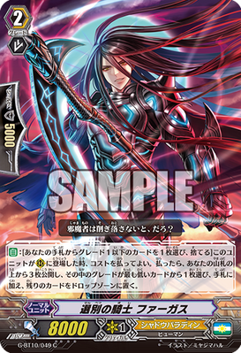 Shadowstitch - Auto [R]: [Choose a normal unit from your drop zone, and put it on the bottom of your deck] At the end of the battle that your unit attacked a vanguard, if that attack did not hit, you may pay the cost. If you do, this unit gets [Power] +3000 until end of turn.