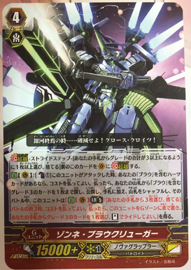 Continuous [Hand]: If you have a grade 3 card with 「Blau」 in its card name in your soul, while you are paying the cost for 「Stride」, this card gets grade+2.