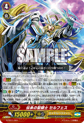 - Includes cards from the clan, Royal Paladin, used by Shion Kiba in the fourth season of Cardfight!! Vanguard "G", Cardfight!! Vanguard "G": NEXT.