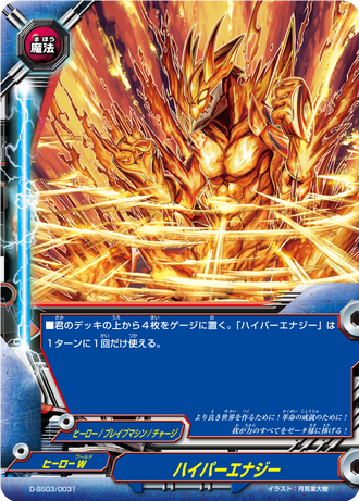 - Put four cards from the top of your deck into your gauge. You may only cast "Hyper Energy" once per turn.