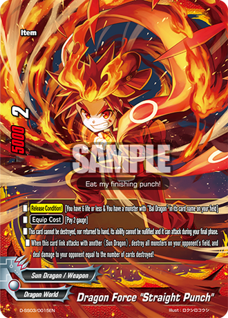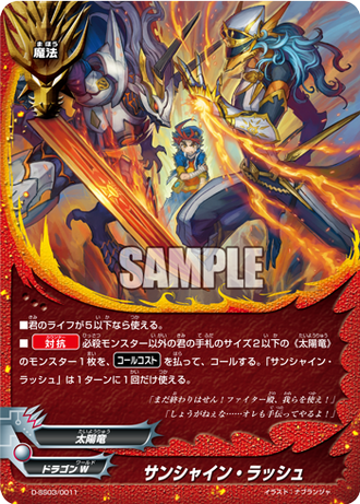 - You may only cast this card during an attack on your opponent's turn, if you do not have a monster in the center, and you have a 《Sun Dragon》 on your field.