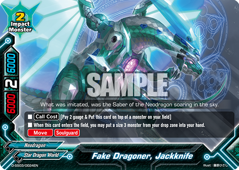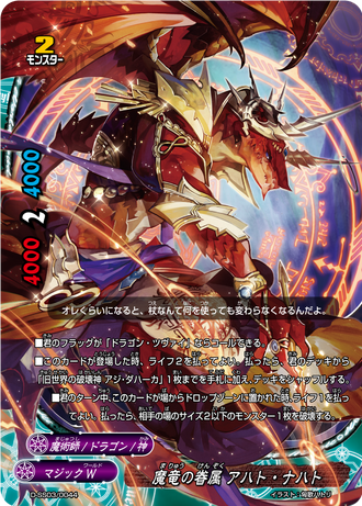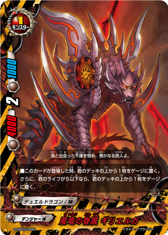 - When this card enters the field, if your flag is "Dragon Zwei", you may discard a card from your hand. If you do, put the top card of your deck into your gauge and draw a card.