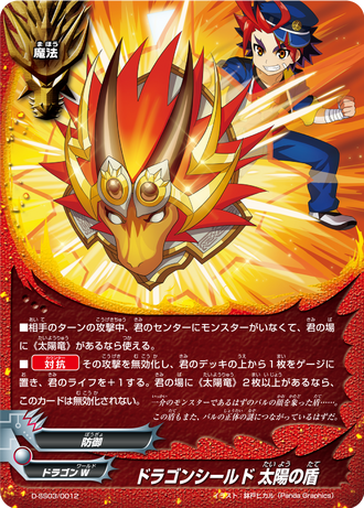 - [Counter] Nullify the attack, put the top card of your deck into your gauge, and you gain 1 life. If you have two or more 《Sun Dragon》 on your field, this card cannot be nullified.