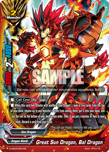 - When this card link attacks with another 《Sun Dragon》, look at the top five cards of your deck, put up to one monster or item from among them into your hand, and put the rest on the bottom of your deck in any order. If you put a card into your hand, discard a card from your hand.