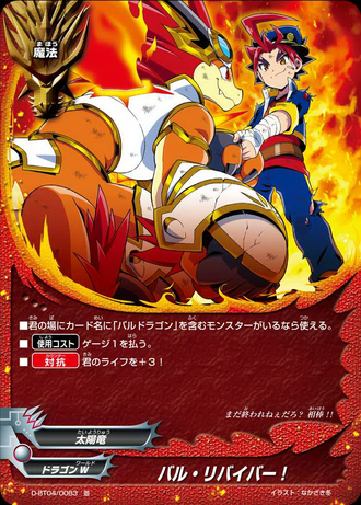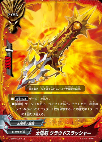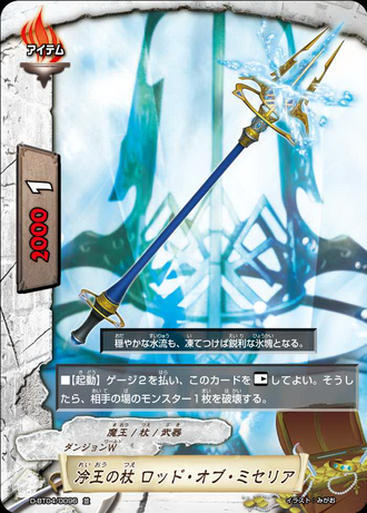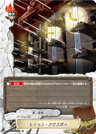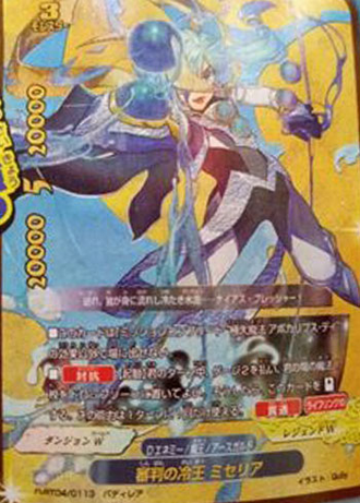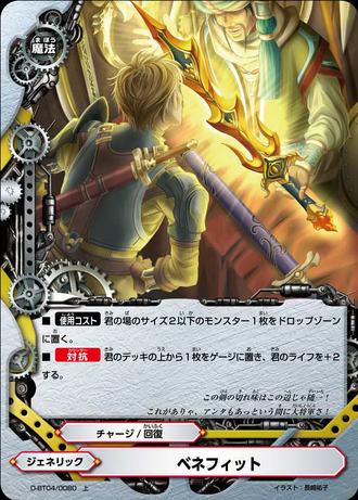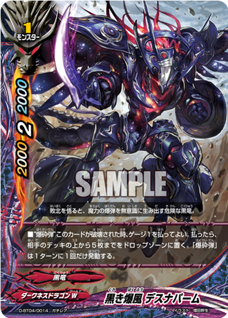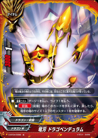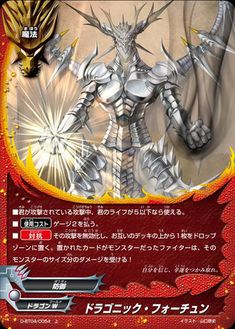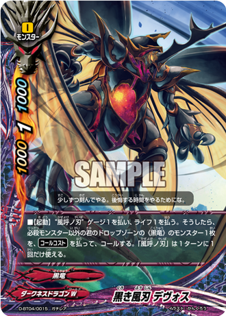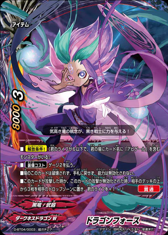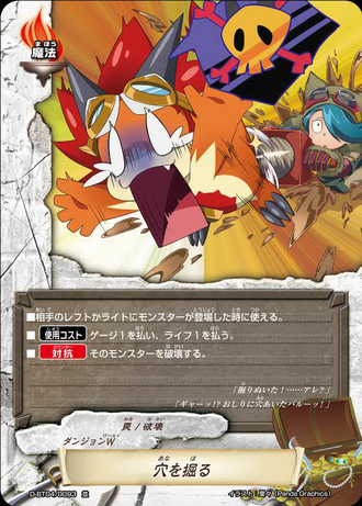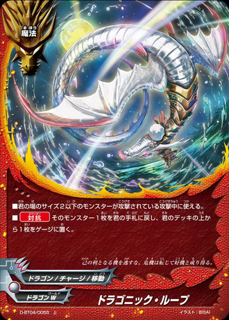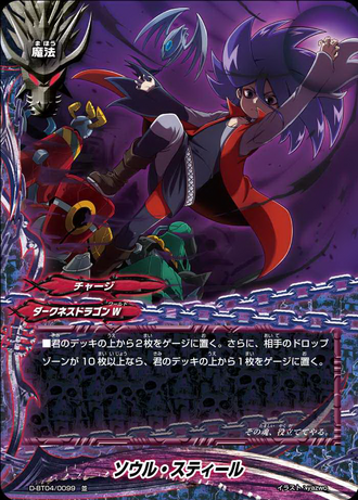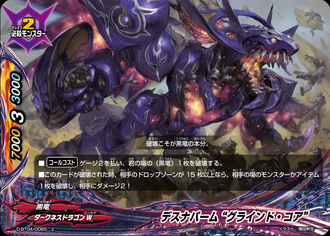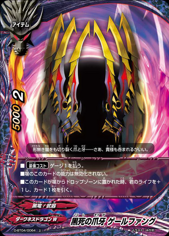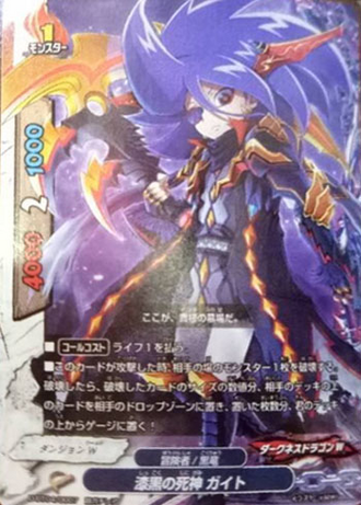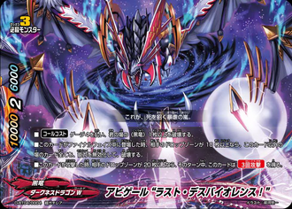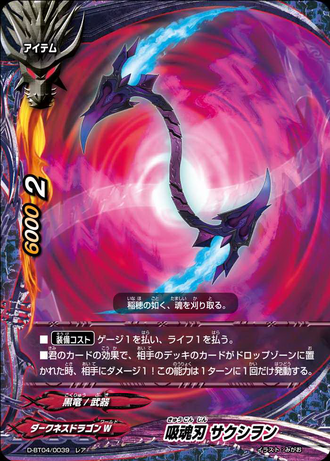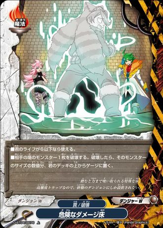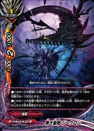 - When this card attacks, destroy a monster on the opponent's field. If you destroyed a monster, put cards from the top of your opponent's deck into his or her drop zone equal to the size of that card and put cards from the top of your deck into your gauge equal to the number of cards that put into drop zone.
