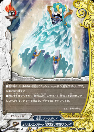 - When this card enters the field during a final phase, if there are sixteen or more cards in your opponent's drop zone, nullify the abilities of all other cards on the field and destroy them.