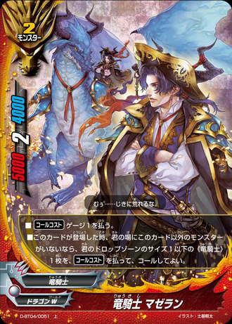 - When this card enters the field, if you do not have another monster on your field, you may call a size 1 or less 《Dragon Knight》 from your drop zone by paying its [Call Cost].