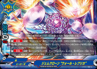- [Counter] [Activate] During your final phase, you may pay 1 gauge. If you do, call an Impact Monster that does not have "Gemclone" in its card name from your hand on top of this card without paying its [Call Cost].BR
