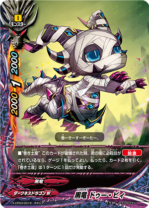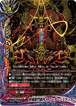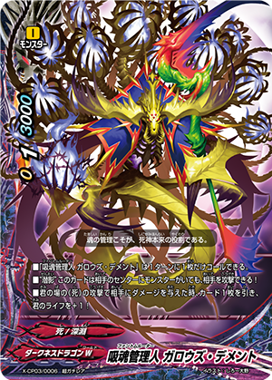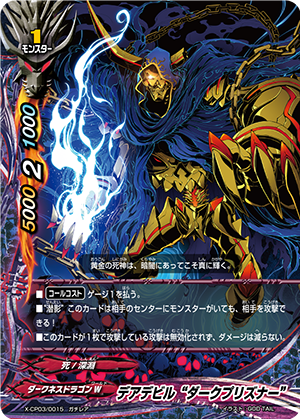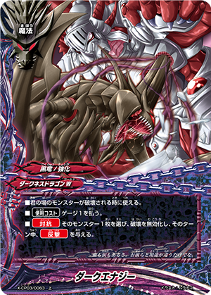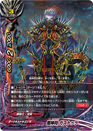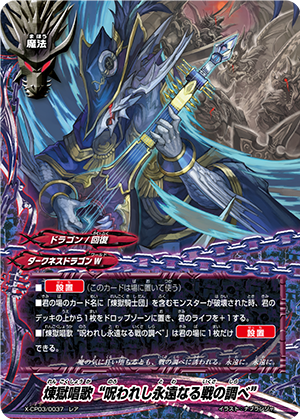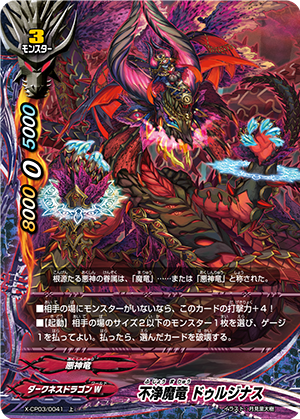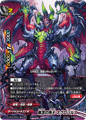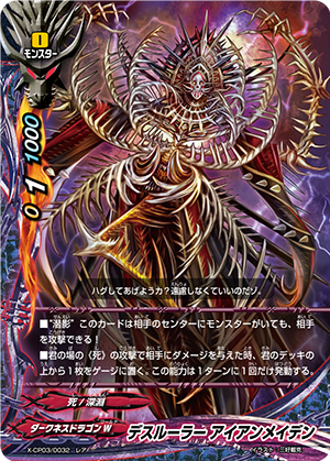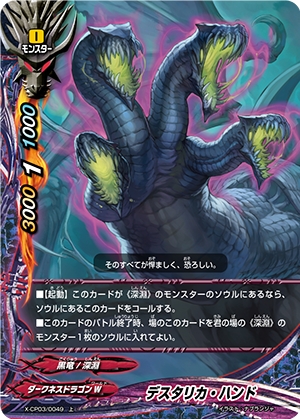 - When a monster or an item on your opponent's field is destroyed, put cards from the top of your opponent's deck equal to the critical of that card into his or her drop zone, and deal damage equal to the number of cards put into the drop zone this way.