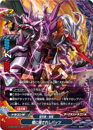 - At the beginning of your attack phase, put a card from your opponent's gauge into his or her drop zone, and then, if you have 4 life or less, deal 2 damage to your opponent.