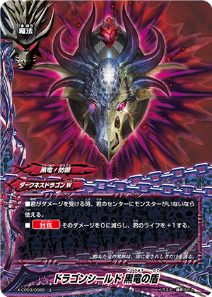 - [Counter] [Activate] If you have a 《Black Dragon》 [Set] on your field, choose a card on your opponent's field, and you may discard this card from your hand. If you do, for this turn, the chosen card gets power-5000, and critical-3!