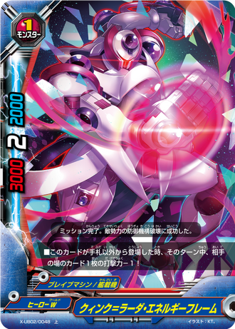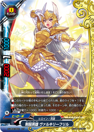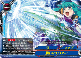 - During the attack phase, if this card leaves the field, put the top card of your deck into your gauge and you gain 1 life!