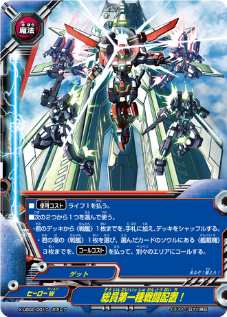 - [Counter] [Activate] Put this card from your field into your drop zone. If you do, search your deck for up to one card with "Winning Maximum" in its card name, add it to your hand, and shuffle your deck. Then, you may call or [Ride] a "Ride-Changer Officer, Winning Maximum" from your hand by paying its [Call Cost] or [Ride] cost.