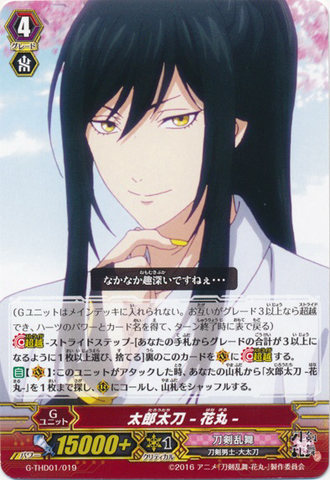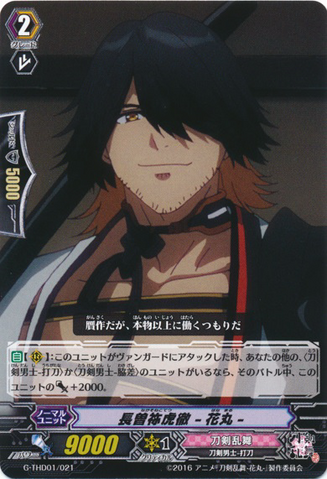 Auto [V/R]: When this unit attacks a vanguard, this unit gets [Power] +5000 until end of that battle for each face up 「Taroutachi -Hanamaru-」 on your [V] or G zone. If there are no face up cards in your damage zone, [Counter Charge (1)].