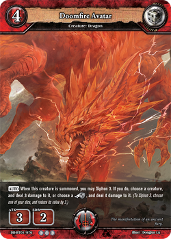 [AUTO] [Dragocross: Red] When this creature attacks, you may Siphon 1. If you do, choose a creature, and deal 3 damage to it. (To siphon 1, reduce the value of one of your dice by 1.)