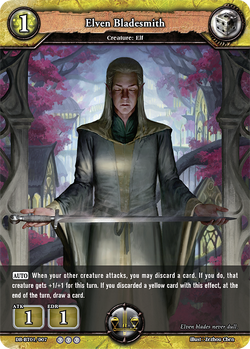 [AUTO] When your other creature attacks, you may discard a card. If you do, that creature gets +1/+1 for this turn. If you discarded a yellow card with this effect, at the end of the turn, draw a card.