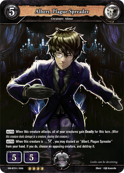 [AUTO] When this creature is [Dragocross: Black], you may discard an "Albert, Plague Spreader" from your hand. If you do, choose an opposing creature, and destroy it.