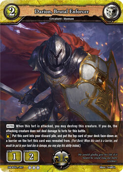 [Fort Burst] Put this card into the discard pile, choose an opposing creature, and destroy it. (Fort Burst: When this card is a barrier, and would be put to your hand due to damage, you may play this ability instead.)