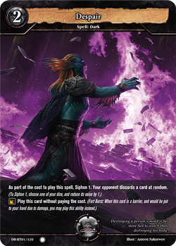 As part of the cost to play this spell, Siphon 1. Your opponent discards a card at random. (To Siphon 1, choose one of your dice, and reduce its value by 1.)