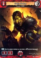 [AUTO] When this fort is attacked, if this card is an ambush, you may choose a fort, and deal X damage to all creatures at that fort, where X is the value of one of your red dice. (Put this card into your discard pile afterwards.)